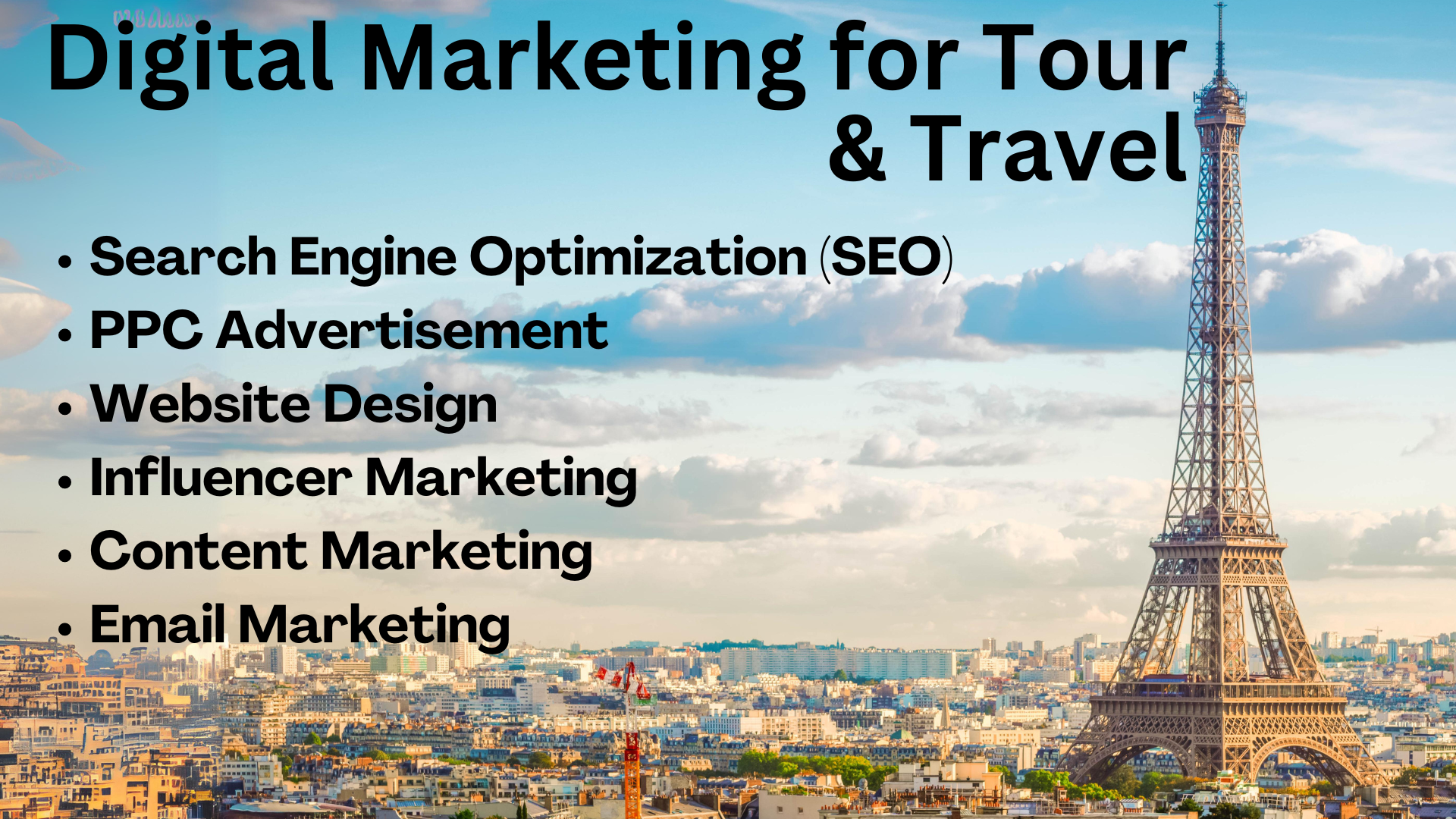 Digital marketing for the tour and travel industry involves online strategies to attract and engage travellers. Key tactics include optimizing websites for search engines (SEO) to increase visibility, leveraging social media platforms to share travel experiences and promotions, and using email marketing to keep potential customers informed about deals and updates. Content marketing through blogs, videos, and travel guides helps build trust and drive traffic to booking sites. Additionally, influencer partnerships and online reviews play a significant role in building credibility and attracting new customers. Effective digital marketing can enhance brand awareness, drive bookings, and foster customer loyalty.