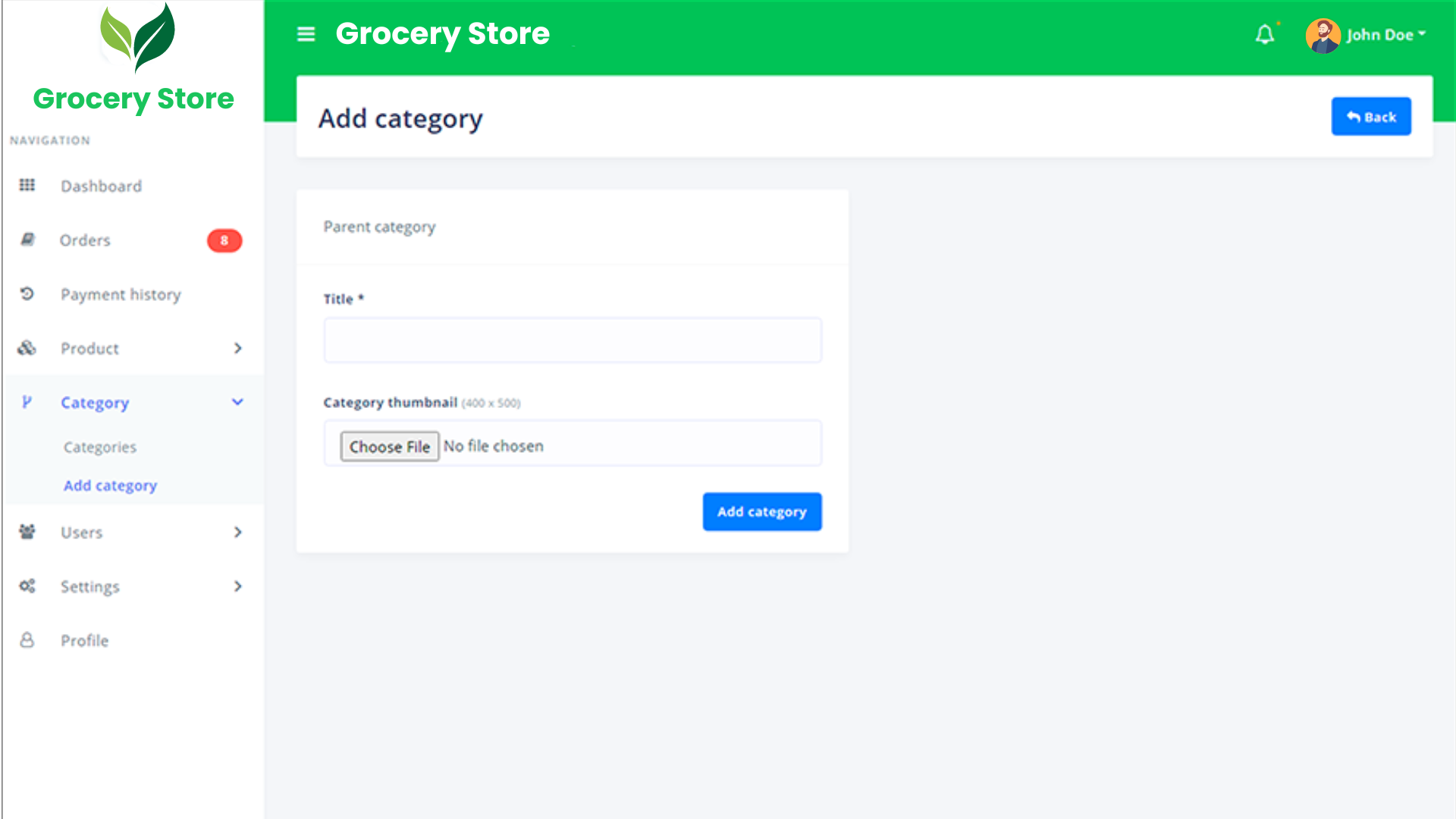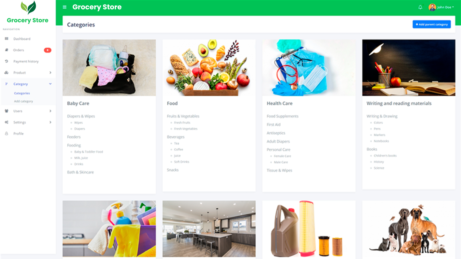- Managing Categories: In checkout, admin can create 3-level categories. Which are parent category, sub-category and sub-sub-category.