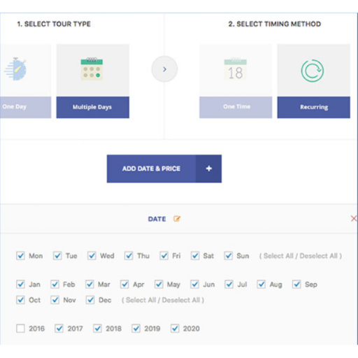 - Timing method – Allow you to set the tour to be available for only one time or make it recurring.