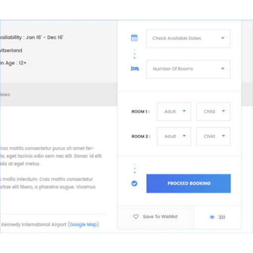 - Beautiful and user friendly booking bar.